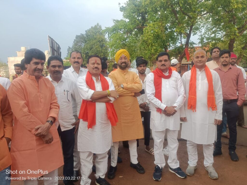 महासमुंद 23 मार्च 2023/ नगर में हिन्दू नववर्ष पर निकले शोभायात्रा पर नगरवासियों एवं समाजजनों ने जगह -जगह पर स्वागत सम्मान किया गया।इसी तारतम्य पर कांग्रेस नेता एवं कांग्रेस जिला कोषाध्यक्ष सुरेश द्विवेदी ने शोभायात्रा में भगवान के तैल चित्र एवं उनके स्वरुप विराजमान नन्हें -नन्हें बच्चों का पुजा कर आशिर्वाद प्राप्त किए।