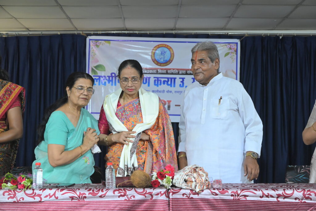 रायपुर/लक्ष्मीनारायण कन्या उच्चत्तर माध्यमिक विद्यालय गुरुकुल परिसर कालीबाड़ी रोड रायपुर में शाला प्रवेश उत्सव का आयोजन किया गया । कार्यक्रम में भारतीय प्रशासनिक सेवा से सेवानिवृत्त अधिकारी श्रीमती शारदा वर्मा मुख्य अथिति के रूप में उपस्थित होकर विद्यार्थियों के उज्ज्वल भविष्य की कामना की । शिक्षा का जीवन मे महत्वपूर्ण योगदान होता है इसी से आप हर उपलब्धि को हासिल कर सकती हैं । नवप्रवेशित विद्यार्थियों का तिलक लगाकर स्वागत किया तथा कापी, पेन वितरण कर मिष्ठान से मुंह मीठा करके प्रवेश उत्सव कार्यक्रम का शुभारंभ किया गया । कार्यक्रम के अध्यक्ष श्री अजय तिवारी जी स्वागत भाषण देते हुए विद्यालय की स्थापना से आज तक के उल्लेखनीय सफर की जानकारी दी । रायपुर शहर में कन्याओं की शिक्षा के लिए समर्पित भातखण्डे ललितकला शिकक्षा समिति द्वारा संचालित विभिन्न संस्थाओं एवम उनकी उपलब्धियों पर भी प्रकाश डाला । नैतिक शिक्षा सामान्य शिक्षा के साथ अनिवार्य होना चाहिये जिससे एक दूसरे के प्रति सम्मान की भावना जागृत हो । कार्यक्रम में गुरुकुल महिला महाविद्यालय की प्राचार्या डॉक्टर श्रीमती संध्या गुप्ता, कमलादेवी संगीत महाविद्यालय से श्री उज्जवल सिंह ठाकुर विशेष रूप से उपस्थित होकर मुख्य अतिथि एवम नवप्रवेशी बालिकाओं का स्वागत किया । विद्यालय पालक समिति के अध्यक्ष श्री हेमकरन देवांगन उपाध्यक्ष श्री ईंधन कलिहारी भी उपस्थित थे । प्राचार्या श्रीमती मनीषा गहोई द्वारा शाला प्रतिवेदन के साथ अतिथियों का स्वागत किया गया । शाल श्रीफल प्रतीक चिन्ह भेंटकर अतिथियों का सम्मान किया गया । कार्यक्रम में भातखण्डे ललितकला समिति की सचिव श्रीमती शोभा खंडेलवाल जी धन्यवाद ज्ञापन दी । कार्यक्रम का संचालन श्रीमती संध्या दुबे ने किया ।
