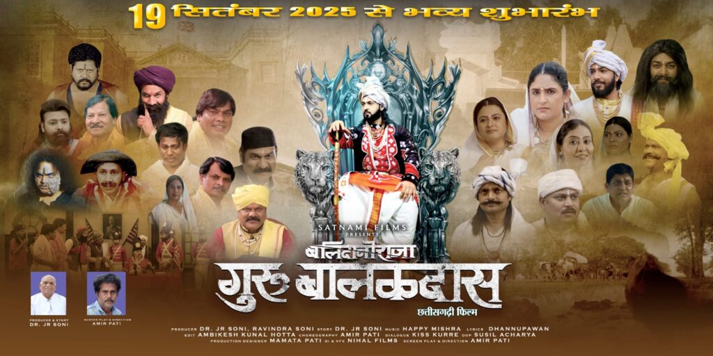रायपुर, 21 सितंबर 2025/ छत्तीसगढ़ के इतिहास पर आधारित भव्य फिल्म “बलिदानी राजा गुरु बालकदास” 19 सितम्बर 2025 को प्रदेश के सभी सिनेमाघरों एवं नागपुर के जैश्री टॉकीज़ में एक साथ रिलीज़ होने जा रही है। यह प्रदेश की पहली ऐतिहासिक बायोपिक है, जो अमर शहीद गुरु बालकदास जी के जीवन, उनके संघर्ष और बलिदान की अमर गाथा को बड़े पर्दे पर जीवंत करती है।