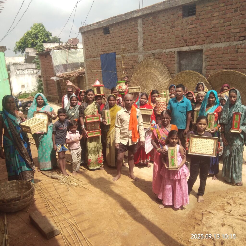 महासमुंद 22 सितंबर 2025/ ग्राम खैरा में हस्तशिल्प छेत्र कौशल विकास योजना अंतर्गत डिजाइन विकास कार्यशाला वस्त्र मंत्रालय भारत सरकार द्वारा स्वीकृति आदेश अंतर्गत दिनाक 30 अगस्त 2025 से 29 सितंबर 2025 तक प्रशिक्षण आयोजित किया गया है। जिसमे आदिवासी कंडरा परिवार को बाँस शिल्प का डिजाइन प्रशिक्षण देने जशपुर से ट्रेनर आजाद भगत एवं रायगढ़ से पुरण झोरखा पहुँचे है। बाँस से उत्कृष्ट सामान लेटर बॉक्स, बक्से, मढ़िया, कुर्शी, गुलदस्ता, ट्रेय, मंदिर, ढोलक, सिंगार बॉक्स, मोबाइल बॉक्स इत्यादि बनाने प्रशिक्षण दिया जा रहा है।