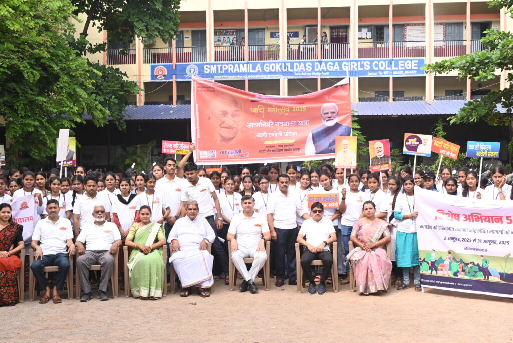 आज दिनांक 14 अक्टूबर 2025 दिन मंगलवार को श्रीमती प्रमिला गोकुलदास डागा कन्या महाविद्यालय में खादी ग्रामोद्योग आयोग, सूक्ष्म, लघु एवं मध्यम उद्यम मंत्रालय भारत सरकार के छत्तीसगढ़ राज्य कार्यालय द्वारा कार्यक्रम किया गया। कार्यक्रम में राष्ट्रीय सेवा योजना के अधिकारी एवं स्वयंसेवकों द्वारा रैली आयोजित की गई जिसमें लगभग 125 छात्राओं ने भाग लिया। छात्राओं की रैली कलेक्ट्रेट परिसर, नगर घड़ी चौक, शास्त्री चौक से होते हुए महाविद्यालय परिसर में आई।