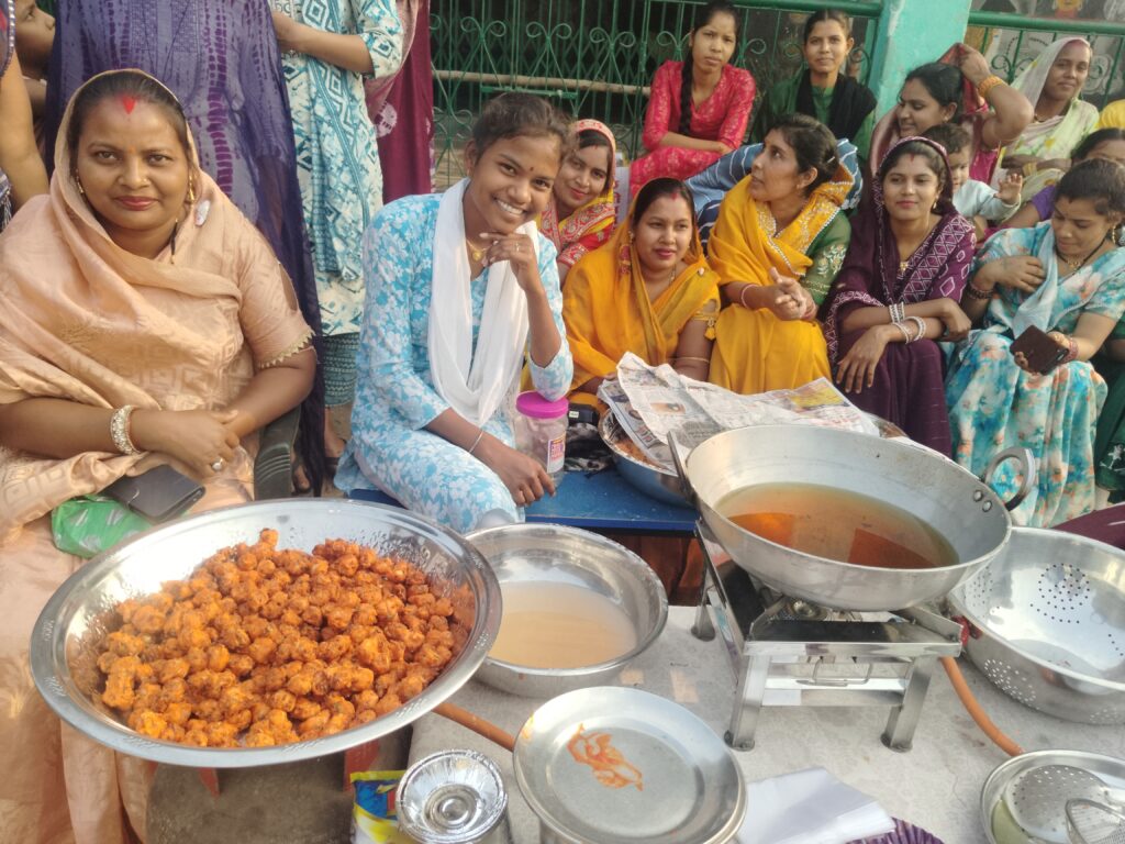 आज ग्राम पंचायत मामा भांचा में बाजार में फास्ट फूड प्रशिक्षिका श्रीमती खुशबू सोनी के चायनीज पकौड़े और मोमोस का स्टाल लगाकर ग्रामीणों को जागरूक किया।