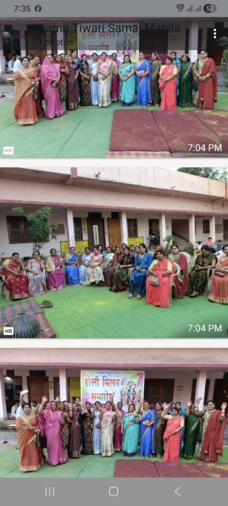 दुसरी ओर समाज के पुरुष वर्ग भी आज बहुतायत की संख्या में उपस्थिति हो नगाड़ा कि थाप के साथ फाग गीत गा जोरदार नाचे। डॉ सुरेश शुक्ला अध्यक्ष सरयूपरिण ब्राह्मण सभा छत्तीसगढ़ ने बताया कि पूर्व घोषणानुसार आज समाज के भवन में होली मिलन समारोह आयोजन किया गया था जिसमें सर्वप्रथम कुल पुरुष बाबा तुलसीदास जी की पूजा अर्चना श्री प्रकाश शर्मा पूर्व अध्यक्ष प्रेस क्लब रायपुर द्वारा कर प्रतिमा में गुलाल लगा होली रस्म प्रारंभ की गई ।इस अवसर पर समाज के सदस्यों ने भारी संख्या में उपस्थिति दर्ज कराई। मातृ शक्तियों के द्वारा भी अधिक संख्या में उपस्थित हो एक दूसरे को गुलाल लगा बधाई दिए। युवाओं के द्वारा नगाड़ा की धुन में जोरदार डांस कर समा बांधा। कुछ वरिष्ठों ने परंपराओं के अनुसार ढोलक बजाकर धार्मिक गीत भजन भी गाया अंत में स्वल्पाहार के साथ कार्यक्रम समापन हुआ।श्रीआर एल द्विवेदी, मित्रेश दुबे ,बृष्णेन्द्र मिश्रा, यदुवंश यदुवंशमणि त्रिपाठी, दादू भाई त्रिपाठी दशरथ प्रसाद शुक्ला, धीरेन्द्र शुक्ला,निशाकांत त्रिपाठी, इन्द्र नारायण त्रिपाठी, कपिल ओझा मथुरा प्रसाद तिवारी शंभु प्रसाद पान्डेय, राजेन्द्र शर्मा,राजेश त्रिपाठी, बैजनाथ मिश्रा,आनन्द दुबेजी, प्रवीण चौबे, आरबी तिवारी, विजय कांन्त शर्मा देवेंद्र तिवारी,प्रमोद गौतम अनिमेष तिवारी शिवम त्रिपाठी आशीष मिश्रा हर्ष मिश्रा राजू महराज, विश्वनाथ तिवारी नागेन्द्र तिवारी, राजेश शर्मा, ओम नारायण पान्डेय, महिला मंडल से कुसुम त्रिपाठी, बृजेश त्रिपाठी,पद्मा ओझा सुसुम शुक्ला स शशि मिश्रा, मीरा दुबे,सुनीता दुबे, पुष्पा मिश्रा अपर्णा तिवारी मल्लिका मिश्रा, अनीता दुबे सुमन त्रिपाठी,मीनाक्षी तिवारी अनीता तिवारी, वंदना मिश्रा सहितसैकड़ों लोग उपस्थित थे।
